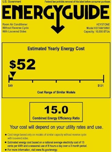 Keystone 10,000 BTU Window Mounted Inverter Air Conditioner, 115V, Energy Star Window Air Conditioner for Rooms up to 450-Sq.Ft. with Quiet Operation and Remote Control