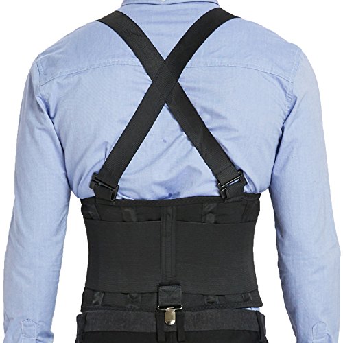 NeoTech Care Lumbar Brace with Removable Pants Clips & Detachable Suspenders - Back Support Belt - Adjustable, Light, Breathable - Shoulder Holsters - Work, Posture (Black, Size M)