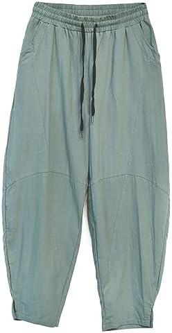 AITFINEISM Mens Cotton Linen Pants Elastic Drawstring Waist Lightweight Summer Beach Pants