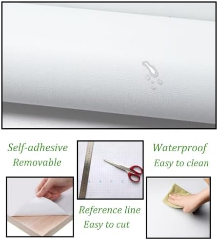 Safiyya 118"x17.7" Peel and Stick Wallpaper White Contact Paper Waterpoof Self Adhesive Decorative Contact Paper Vinyl Roll for Wall Kitchen Wallpaper for Bedroom