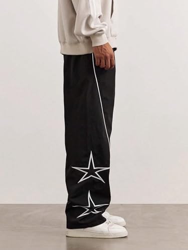 ZAFUL Men's Side Star Casual Pants Y2K Lightweight Sweatpants Drawstring Dance Pants Baggy Fashion Straight Leg Pants