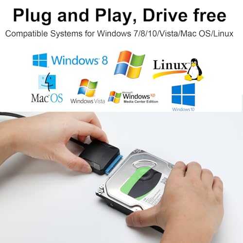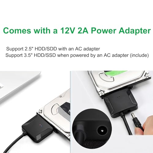 EYOOLD SATA to USB 3.0 Adapter, External Hard Drive Converter Cable for 2.5" 3.5" HDD, SSD with Power Supply