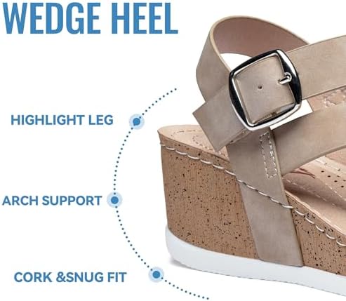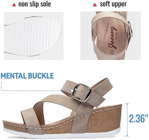 Jeossy Women's Platform Wedge Sandals 835 Comfortable Open Toe Ankle Strap Summer Walking Sandals with Buckle