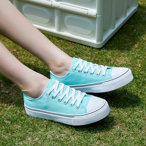 ZGR Womens White Tennis Shoes for Women,Lace up Canvas Sneakers,Casual Walking Canvas Shoes