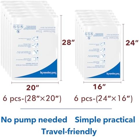 12 Pack Compression Bags for Travel Vacuum Seal Storage Bags for Luggage & Dirty Clothes Travel Packing Space Saver Bags for Suitcases & Home Organization MEIQIHOME