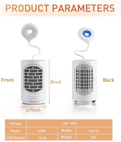 ibo Electric Space Heater Ceramic Small Heater with LED Light, 500W Heater Fan 4 in 1 Desk Heater for Home Office and Indoor