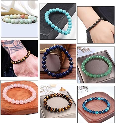 Jewdreamer 12Pcs Natural Stone Beaded Bracelets for Women Men Semi-Precious Gemstones Bracelets Crystal Beaded Bracelet Unisex Adjustable Stretch Bracelets 8MM