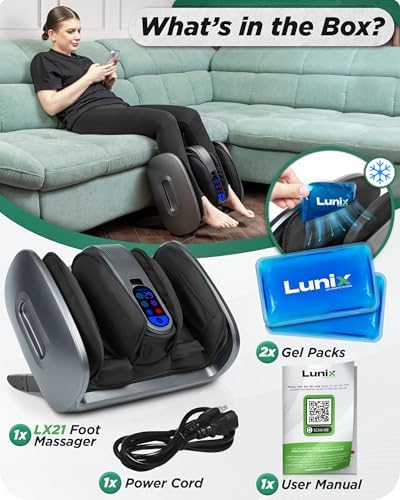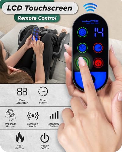 Lunix LX21 Feet Massager with Remote for Pain Relief, Circulation and Heat Therapy, Foot and Calf Shiatsu Massager for Plantar Fasciitis and Neuropathy, Ankle Device, Gray