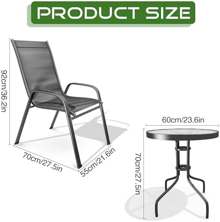SONGBATE Large Patio Bistro Set 36" Table & 2 Chairs Modern Metal Frame with Textilene Fabric