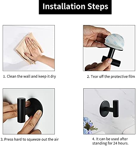 Self Adhesive Towel Hook Matte Black Coat Hook Brushed Nickel SUS304 Stainless Steel Heavy Duty Waterproof Towel Robe Clothes Hook Holder for Bathroom Kitchen Office Hotel Pool Wall Mounted Hook-2Pack