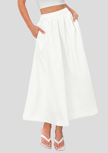 PRETTYGARDEN Women's Long Skirt 2025 Summer Fashion Wrinkled High Waist Casual Elegant Skirt Strap Pocket