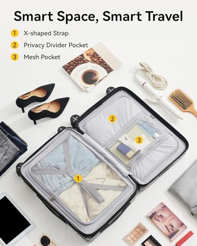 LUGGEX Luggage with Spinner Wheels, Polycarbonate Expandable Hard Shell Suitcase, Carry On 20 Inch, Charcoal Metallic