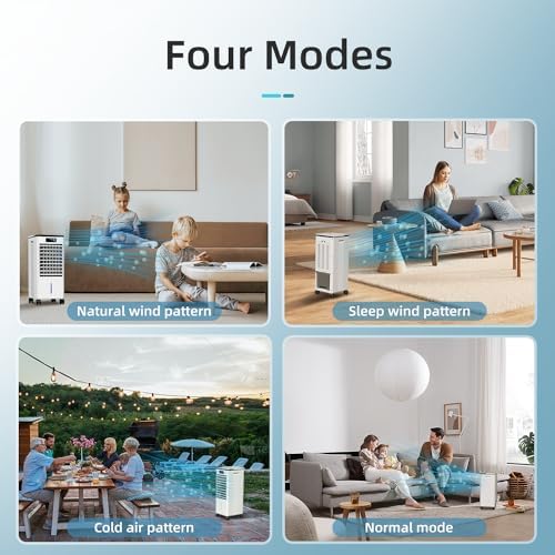 Portable Air Conditioners, 3-IN-1 Evaporative Swamp Cooler, Windowless Air Conditioner, 4 Modes & 3 Speeds, 12H Timer, Child Lock, Smart Remote & Touch Control, Portable Ac Unit for Bedroom, I