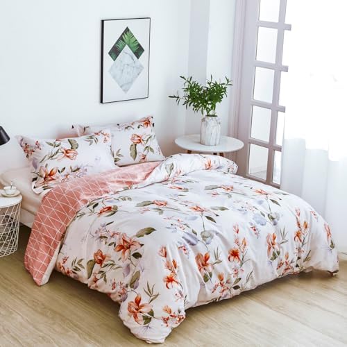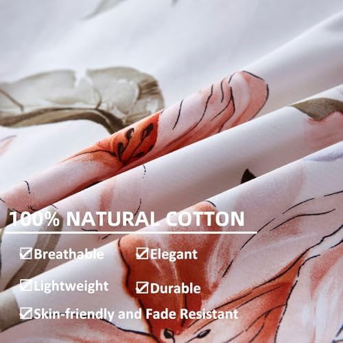 OAITE Duvet Cover Set,100% Cotton Comforter Cover with Floral Pattern Duvet Cover Set,Soft Bedding Set Includes with 3 Piece (2 Pillow Shams,1 Duvet Cover)