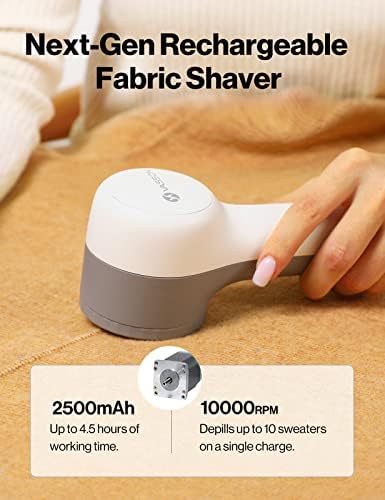 VASSON Fabric Shaver, Sweater Shavers to Remove Pilling, High-Perf Defuzzer, Rechargeable Electric Lint Shaver for Fuzz and Lint Balls from Clothing, Upholstery (Greyish White)