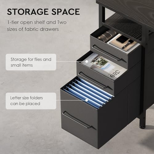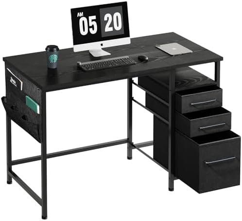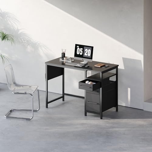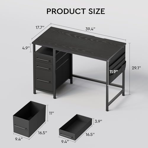 Maihail Maihail Small Desk with Drawers, 40 inch Computer Desk with Shelves, Writing Desk with Storage, Small Office Desk with Metal Frame, Black