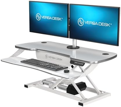 VERSADESK® PowerPro™ Elite 40\u201D x 24" \u2013 App Controlled Electric Standing Desk Converter w\/USB Charging Port. Raises up to 20\u201D. Fully Assembled \u2013 Includes LED Lights. Supports 8