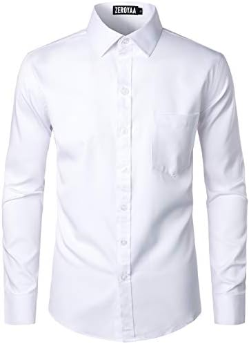ZEROYAA 男式都市时尚休闲商务修身长袖纽扣正装衬衫带口袋