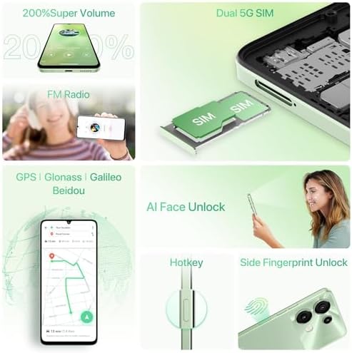 UMIDIGI G9 5G Cell Phone, Android 14 Unlocked Phones, 12(6+6) GB +128GB\/1TB TF Expand, 5G Dual SIM, 50MP Camera, 6.75" HD+ 90Hz Display, AI Face & Fingerprint Unlock, 5000mAh Android Phone Gr