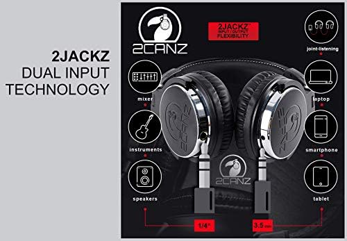 2CANZ Over-Ear Professional Wired DJ Headphones - 50mm Neodymium Drivers, Closed Back, Plush Comfrasoft Ear Cushions, 8-Way Adjustable Earpads, Foldable, and Joint Listening