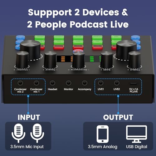 Brvomussy Podcast Equipment Bundle for 2, Audio Interface with Voice Changer Condenser Microphones for Gamer, All-in-One Audio Mixer Perfect for Live Streaming, Singing, YouTube, Gaming