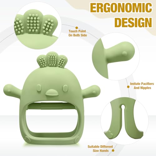 4 Packs Baby Teething Toy Silicone Teething Toys for Babies 0-6 Months Anti Dropping Wrist Hand Teethers Mitten Chick Baby Chew for Sucking Needs