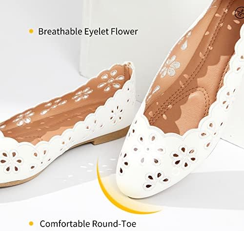 FRACORA Women's Ballet Flats Black PU Leather Dress Shoes Comfortable Round Toe Slip on Flats with Breathable Eyelets