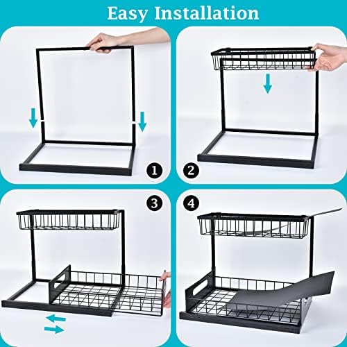 REALINN Under Sink Organizer, Pull Out Cabinet Storage 2 Tier Slide Out Sink Shelf, Kitchen Organizers and Storage, Black, 1 Pack