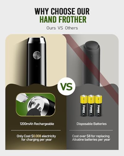Maestri House Rechargeable Milk Frother with Stand, LunaFro Handheld Electric Foam Maker Waterproof Detachable Stainless Steel Whisk Drink Mixer Foamer for Lattes, Cappuccino