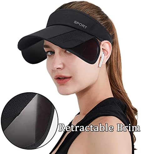 Peicees 2 Pack Wide Brim Sun Visors for Women Golf Hat with Retractable Brim UV Sun Protection Hat for Beach Tennis Running