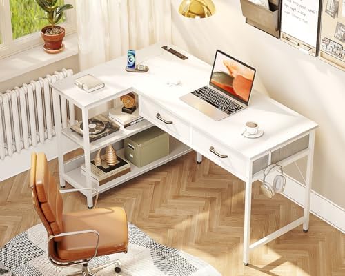 Coleshome 40 Inch L Shaped Computer Desk with 2 Drawers, Small Desk for Small Space, Home Office Table for Laptop Users, White