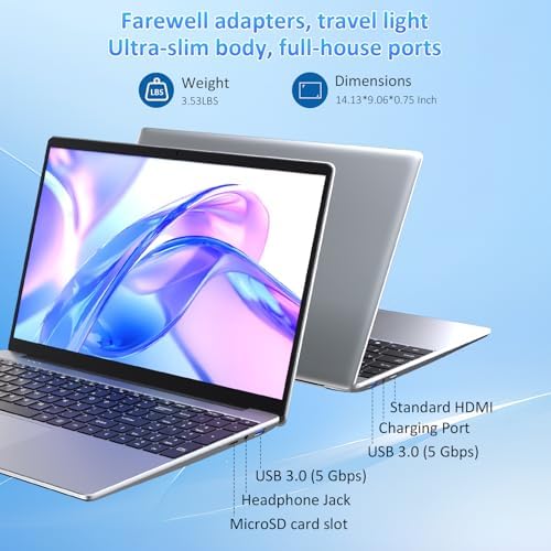 Auusda 15.6" Laptop Computer, 16GB RAM, 1TB NVMe, 4C4T N95 1.7-3.4GHz, FHD Display, Backlit Keyboard, Fingerprint Reader, Big 8000mAh Battery, Win11 Pro, Upgradable to 10TB Storage, Silver, T152A