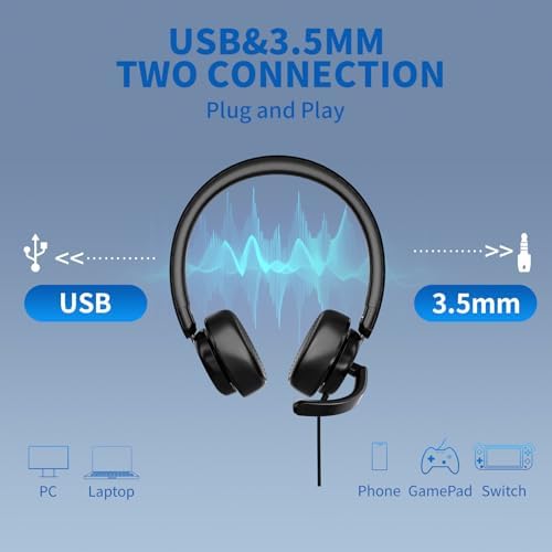 awatrue USB Headset with Microphone for PC, Computer Headset with Noise Canceling Microphone for PC Laptop, in Line Mute Controls, Wired Headset for Work from Home\/Office\/Call Center\/Teams\/Zoom