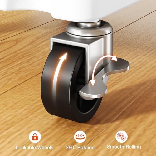 Pipishell 3 Tier Rolling Cart Organizer, Plastic Rolling Cart with Lockable Wheels & Reinforced Handle, Lightweight Utility Cart Storage Cart for Nursery, Kitchen, Bathroom, Craft Room, White, PIU
