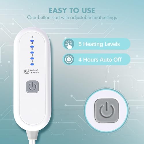 VELLUBAM electric blanket cover 7cm x 5.4cm, soft flannel lamb wool with 5 heating levels and 4-hour automatic shut-off, heating ring blanket as a grandmother's gift, machine washable (blue)