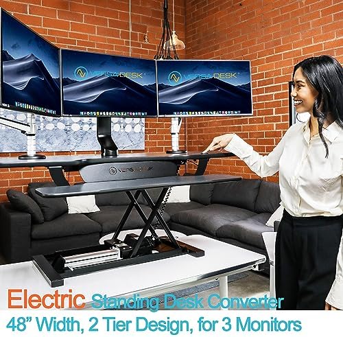 VERSADESK® PowerPro™ 48\u201D x 24\u201D Extra Wide Electric Sit-to-Stand Desk Converter w\/ Keyboard Tray for Home or Office USB Charging Port Supports Multiple Monitors Lifts 80 lbs. - Black