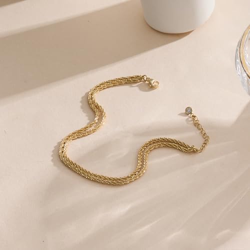 Robaice Ankle Bracelets for Women, Glitter Waterproof Adjustable Anklet for Women, 14K Gold Plated\/Sterling Silver Layered Anklets, Summer Beach Anklet Jewelry for Women Gift