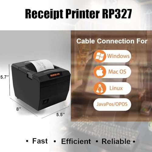Rongta POS Receipt Printer, 80mm Thermal Printer with USB\/Serial\/Ethernet and Auto Cutter for Kitchen and Retail Use, Cash Drawer Support for Windows\/Mac\/Linux (RP327)