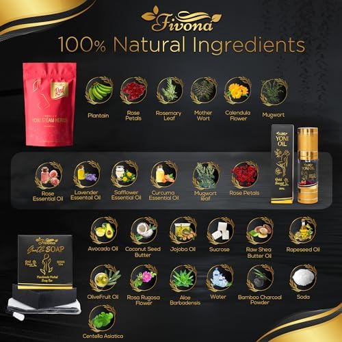 Fivona 4-in-1 Feminine Care Kit, Yoni Oil, Yoni Soap, Yoni Steaming Pot and Red Premium V Steam Herbs, Complete Herbal V Care Set
