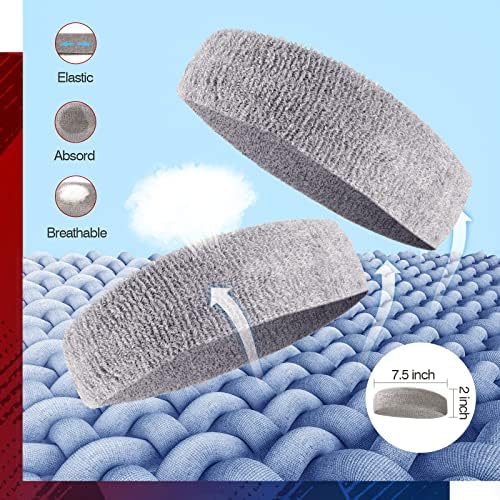 Sweatbands Sports Headband for Men & Women, Moisture Wicking Hairband Athletic Towel Headbands Cotton Head Sweat Bands for Running, Cycling, Yoga, Spa