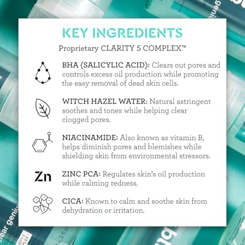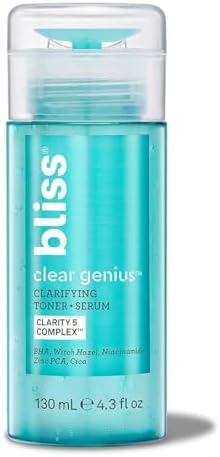 Bliss Clear Genius Clarifying Toner + Serum - 4.3 Fl Oz - Purifies Pores, Tones, Calms & Clears Skin - Salicylic Acid, Niacinamide & Witch Hazel - Clean Paraben Free - Vegan & Cruelty-Free