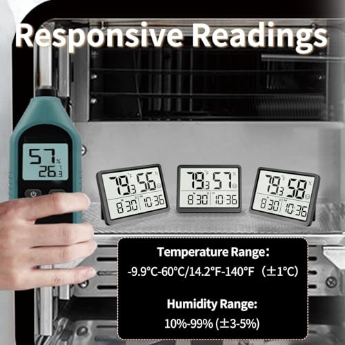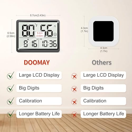 DOOMAY Room Thermometer Indoor - Hygrometer Temperature and Humidity Monitor with High Accuracy Sensor LCD Display Large Display Date Clock for Kitchen Baby Room Office (Black)