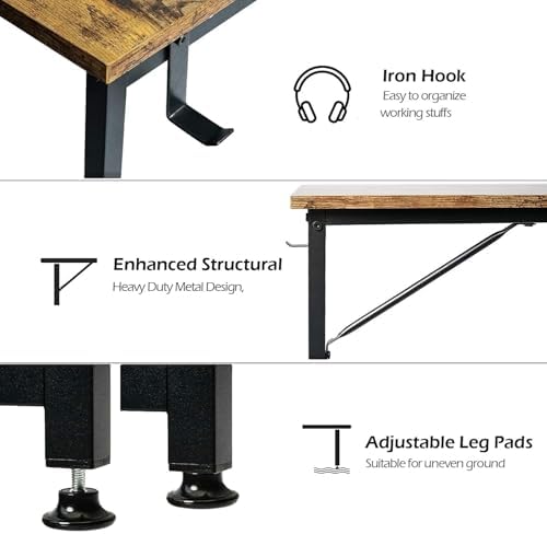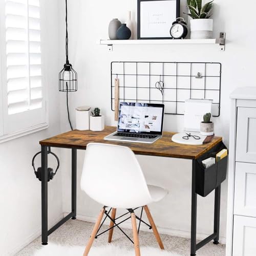 Lufeiya Small Computer Desk Study Table for Small Spaces Home Office 31 Inch Rustic Student Laptop PC Writing Desks with Storage Bag Headphone Hook,Brown