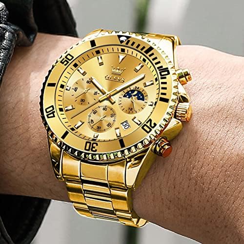 OLEVS Men Watch,Big Dial Watches for Men Stainless Steel Watch with Day Waterproof Analog Quartz Watches for Man Classic Business Wristwatch Luxury Luminous Round for Men Rotatable Bezel Watch