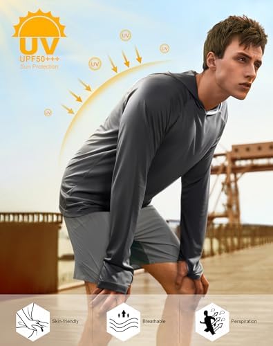 isnowood Sun Shirt UPF 50+ Men's Fishing Shirt Long Sleeve UV Protection Hoodie Rash Guard for Swimming Running Hiking Light