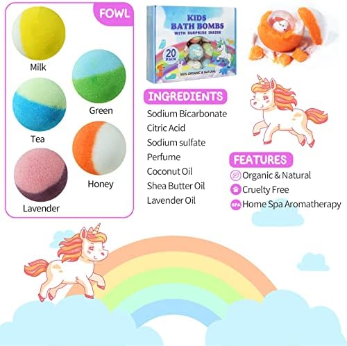 Bath Bomb Gift Set with Toys Inside, 20 Pack Organic Bath Bombs for Kids, Kids Safe Handmade Fizzy Balls for Kid, Ideal Birthday Easter Gift for Boys & Girls