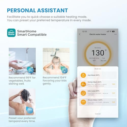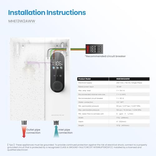 Midea 13KW Electric Tankless Water Heater, Touch Control, Wi-Fi Control, LED Display, Child Mode, 240 Volts with Automatic Power Modulation, On-demand Hot Water, White