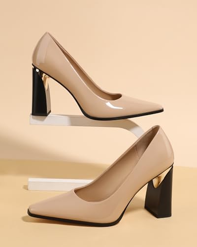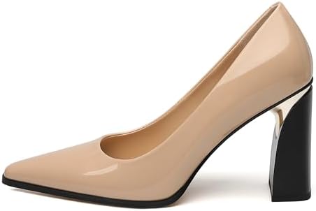 ROSERWISH High Chunky Block Heels for Women, Closed Pointed Toe Slip-On Pumps, Retro Vintage Style, 3.5" Comfortable Dress Shoes for Party, Work, Office, Prom & Wedding