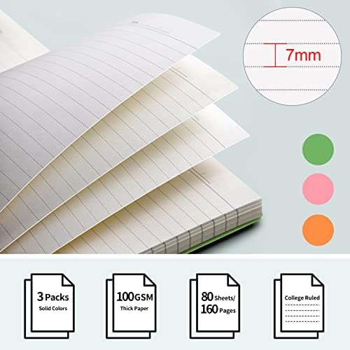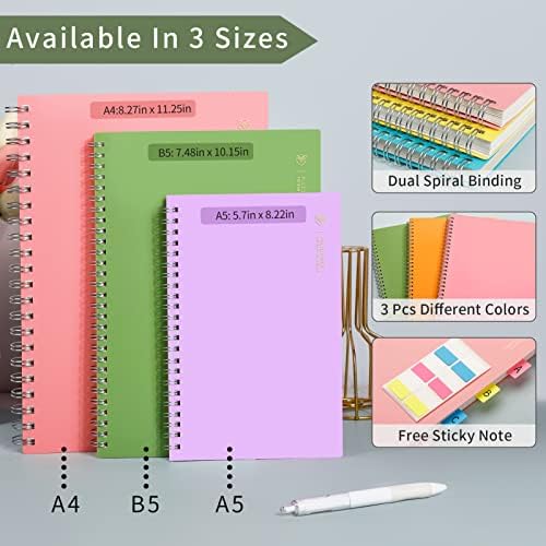 EMSHOI Spiral Notebook College Ruled, 3 Pack 7.48" x 10.15" B5 Large Composition Notebooks, 480 Pages 100gsm Thick Lined Journal, with Sticky Notes, Plastic Hardcover, Orange, Green, Pink