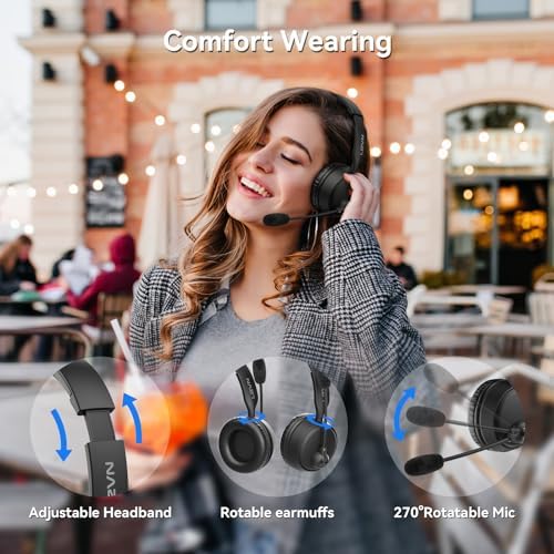 LEVN Bluetooth Headset with Microphone, Wireless Headset with Mic & Mute Button, 60 Hrs Working Time, Noise Cancelling Bluetooth Headphomes 5.3 Multipoint Connect to Cell Phone\/Mobile\/Laptop\/Ta